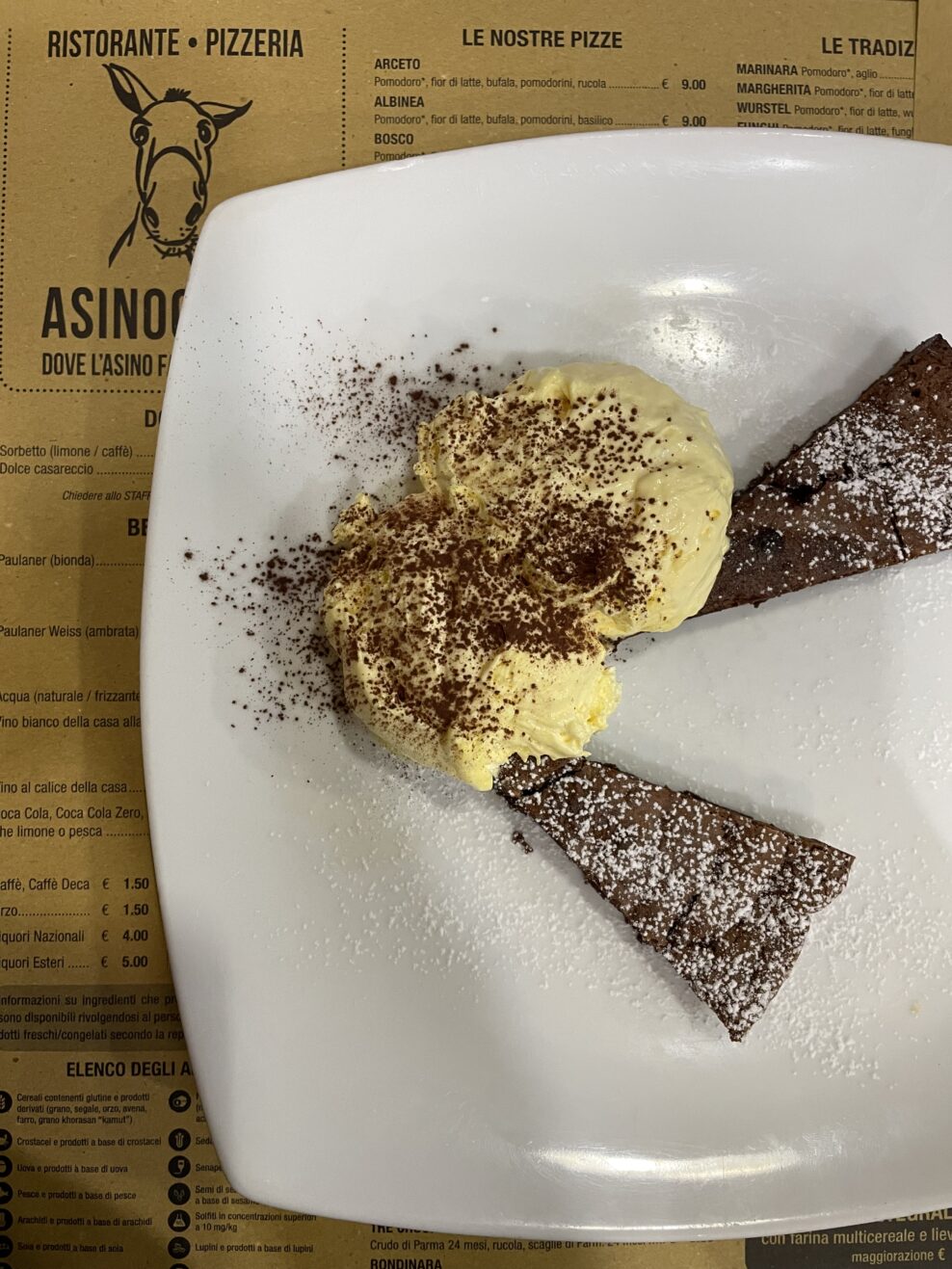 torta cioccolatino servita con il mascarpone dell’Asino Cotto